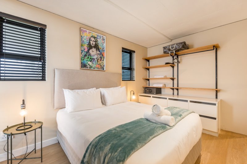 This 2 bedroom apartment is characterized by its airy and bright ambiance and features sliding doors that open onto a spacious balcony offering breathtaking views of Table Mountain, the ocean, and the city. The apartment is designed with contemporary aesthetics and modern finishes that ensure a comfortable living experience. It is equipped with convenient amenities like access to Netflix channels and high-speed Fibre internet. A fully equipped kitchen with modern appliances will have you cooking like Jamie Oliver! Take advantage of the communal laundry room or sunbathe on a large rooftop terrace before taking a refreshing swim in the communal pool that offers panoramic views.