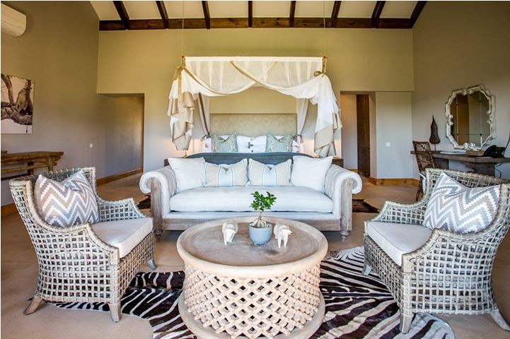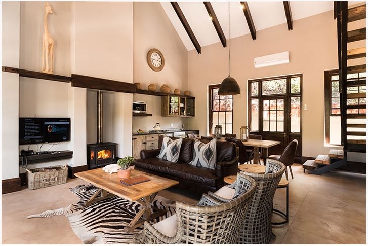 These eight luxurious, family-friendly Self-Catering Bush Villas make getting away from it all an occasion. The fully equipped kitchen, dining room and lounge with TV and fireplace open onto an expansive outdoor entertainment area with barbeque facilities and splash pool overlooking the tranquil dam – where hippos wallow, birds swoop and an array of wildlife come down to drink.