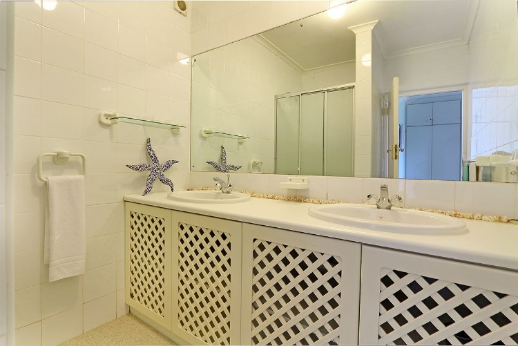 2nd bedroom: 2 x single beds – can be pushed together to make a double bed, ocean and garden views, en-suite with shower