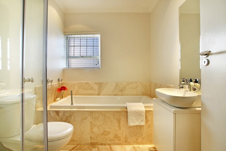 The villa sleeps four guests in two bedrooms. The main bedroom and second bedroom each has twin beds which convert into a comfortable king-size bed. An optional single bed can be added to the study for a family of five. The main bedroom has an en-suite bathroom with a bath and shower. The bathroom to the second bedroom is across the hall and also has a bath and shower. Both bedrooms have plenty of cupboard space.