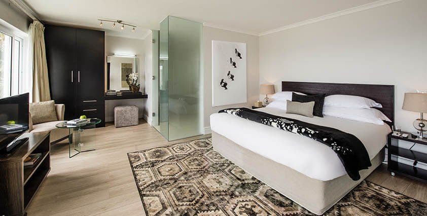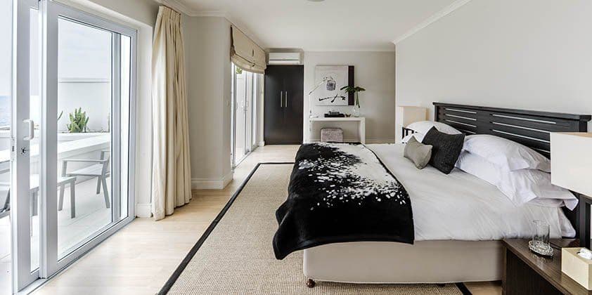 Summer evenings can be spent outdoors enjoying a barbecue on the beautifully manicured grass whilst taking in Camps Bay’s memorable sunsets.The spacious 7 en- suite double bedrooms are all located on the ground and upper levels of the property and beds can be configured to either king or twin options.The 2 main bedrooms are alongside each other and include a lovely outdoor area with sea views.