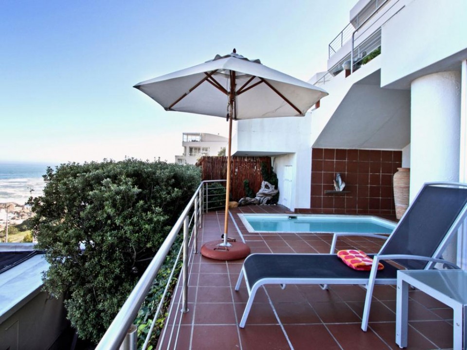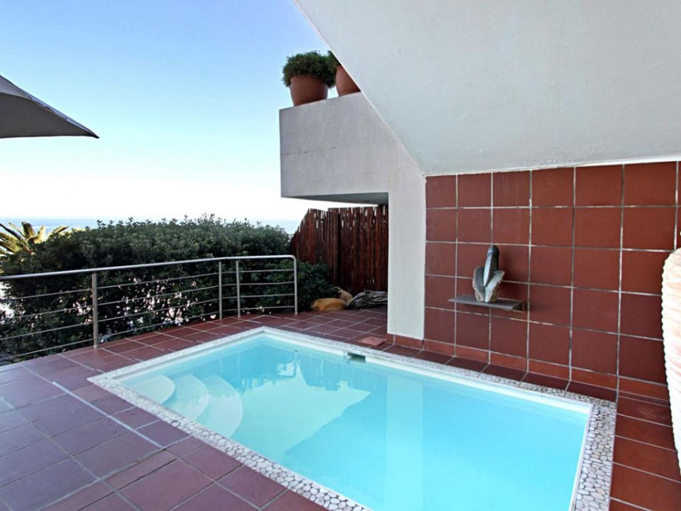 Large sliding doors open up onto a protected sun terrace with a splash pool. Enjoy the outdoors by relaxing on the sun loungers or dining on the patio at the entrance. All of this, within easy walking distance of Camps Bay’s beach and restaurants make this property one of Cape Town’s finest one bedroom properties.