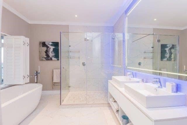 - En-suite bathroom with double walk in shower, bath and double vanity