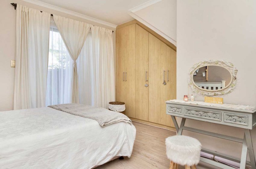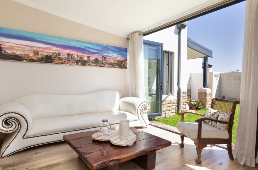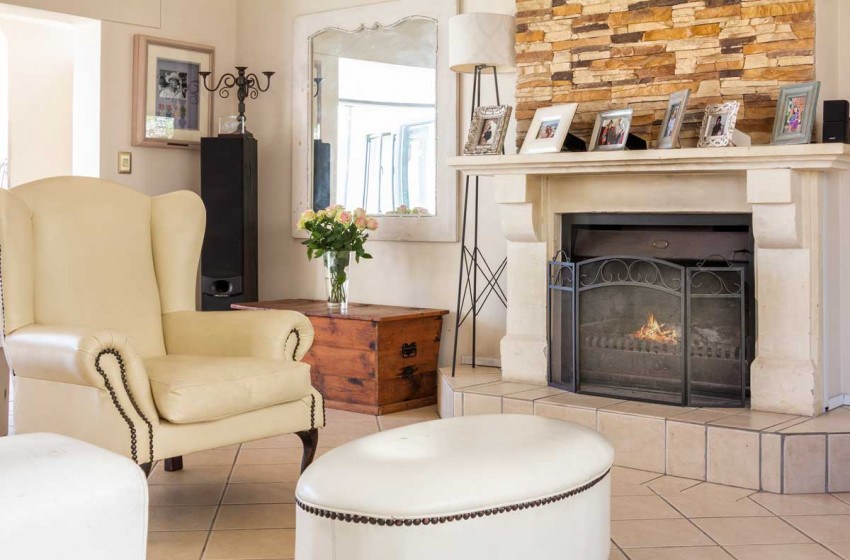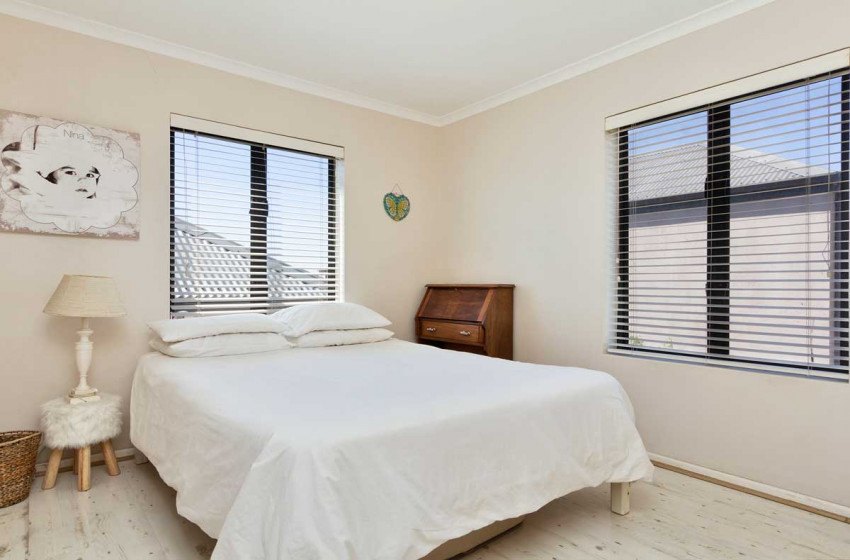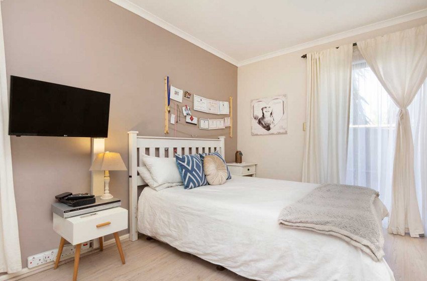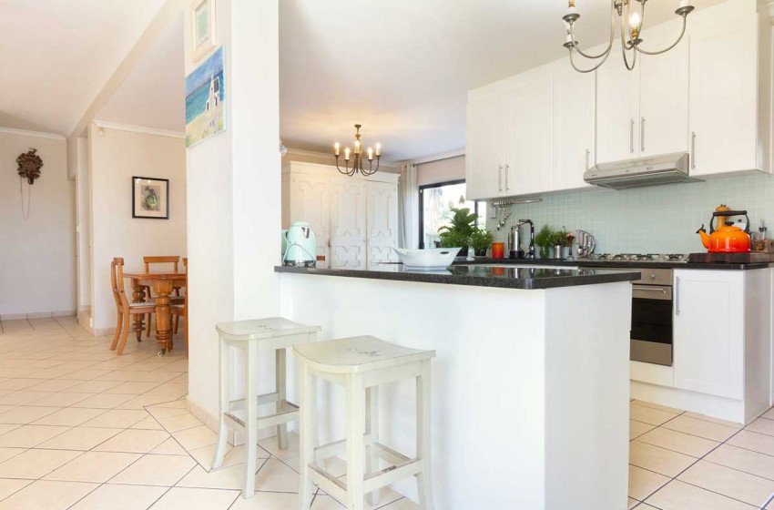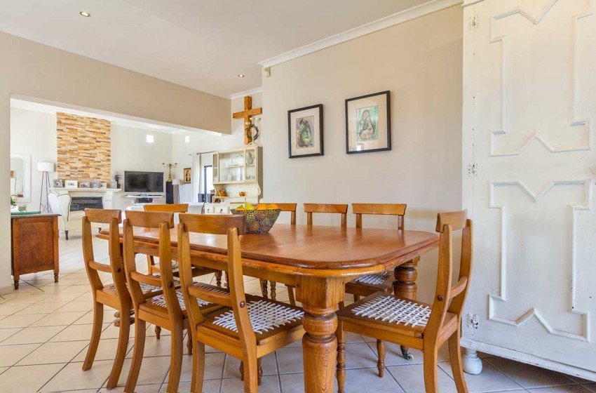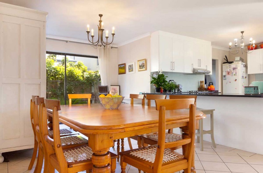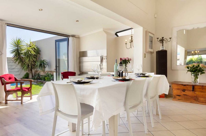 The home can comfortably sleep up to 6 and has three bedrooms and two bathrooms making it the ideal holiday rental for friends or family gatherings. The main bedroom has a king bed with a TV and en-suite bathroom. The second bedroom has a queen bed while the third has a double. The second and third bedrooms have access to a shared bathroom with a shower. The main interior includes a full kitchen, spacious lounge with a fireplace and flat-screen TV, two dining areas and an indoor braai perfect for entertaining no matter the weather.