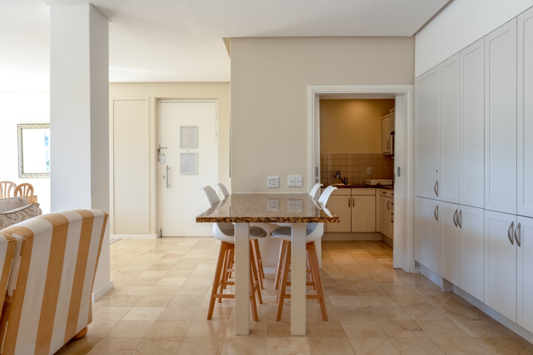 Everything is taken care of at the holiday apartment, from the impeccable maintenance of the property to the gardens and the swimming pools, and 24-hour security on site. A system of boardwalks and bridges over the waterways leads to communal pools, to the heart of the Waterfront or to the centre of Cape Town. It’s a wonderful place for a gentle evening stroll, as a myriad of little blue lights turns the marina into a fairyland.