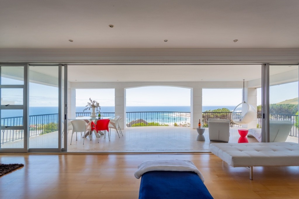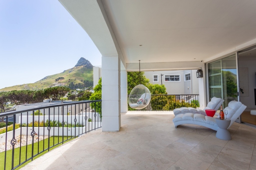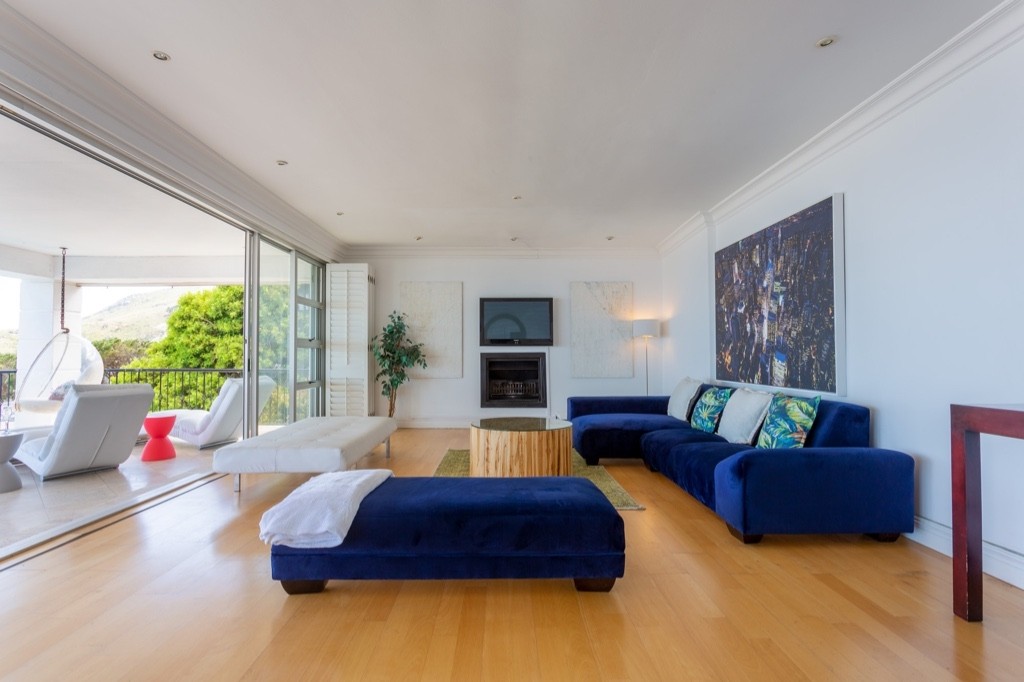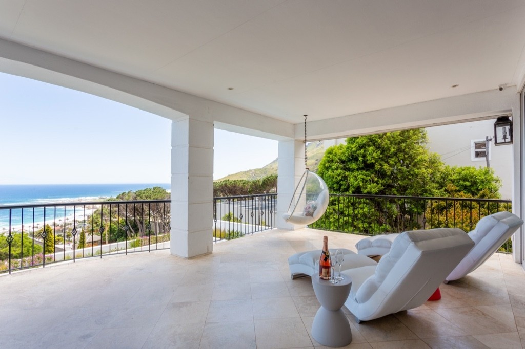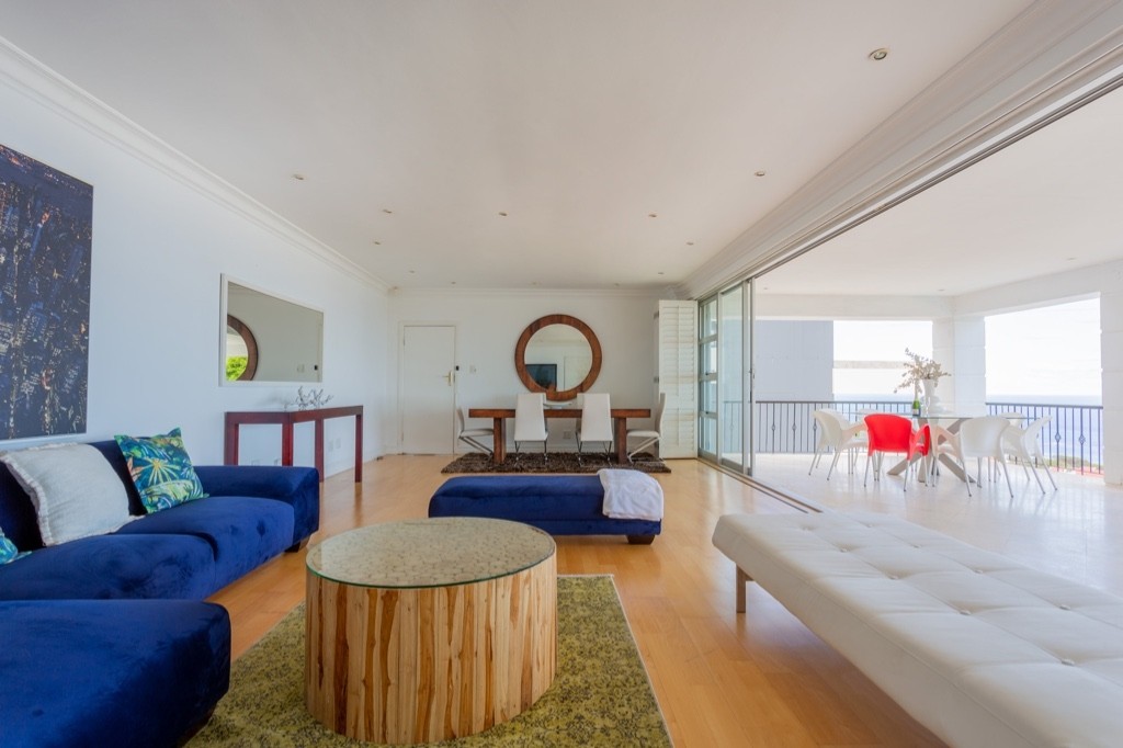 A spacious living room with a large terrace and sweeping views of Camps Bay Beach make this an ideal location from which to enjoy the views of the ocean.