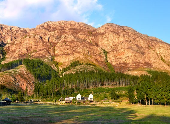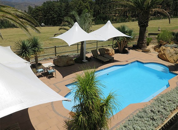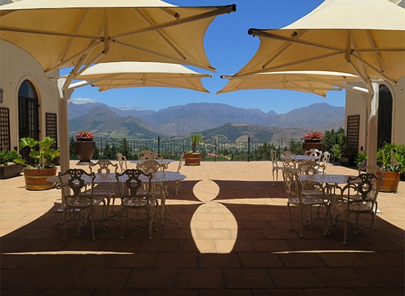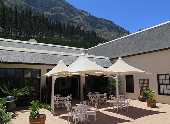 Built in the Cape Dutch style and tastefully decorated with African flair, including several Big Game trophies from proprietor Mr Chris Hellinger, the Safari Lodge offers five luxurious rooms, a deep-set veranda, a spacious patio and sweeping views across the Franschhoek valley.