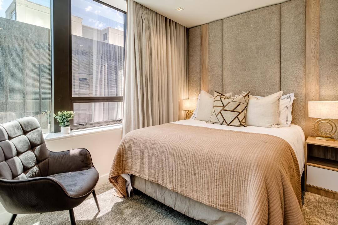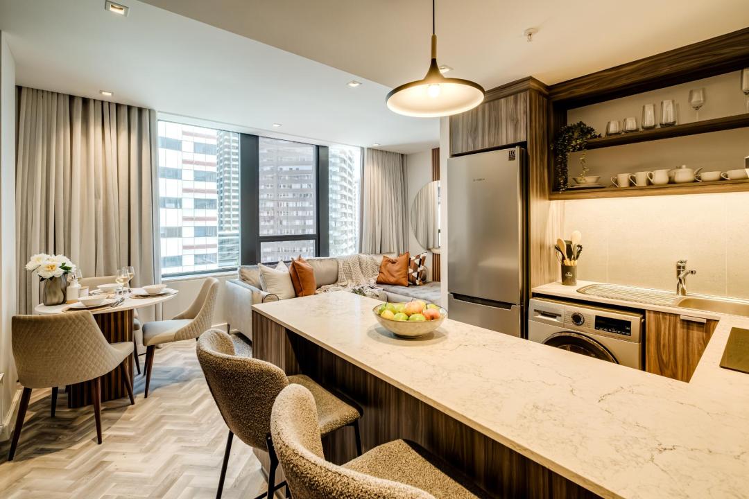 City Suite 902, located in the heart of Cape Town City Centre, offers a refined retreat with stunning city views, ideal for both business and leisure travellers. The queen bedroom is equipped with air conditioning and an ensuite bathroom with a modern shower.