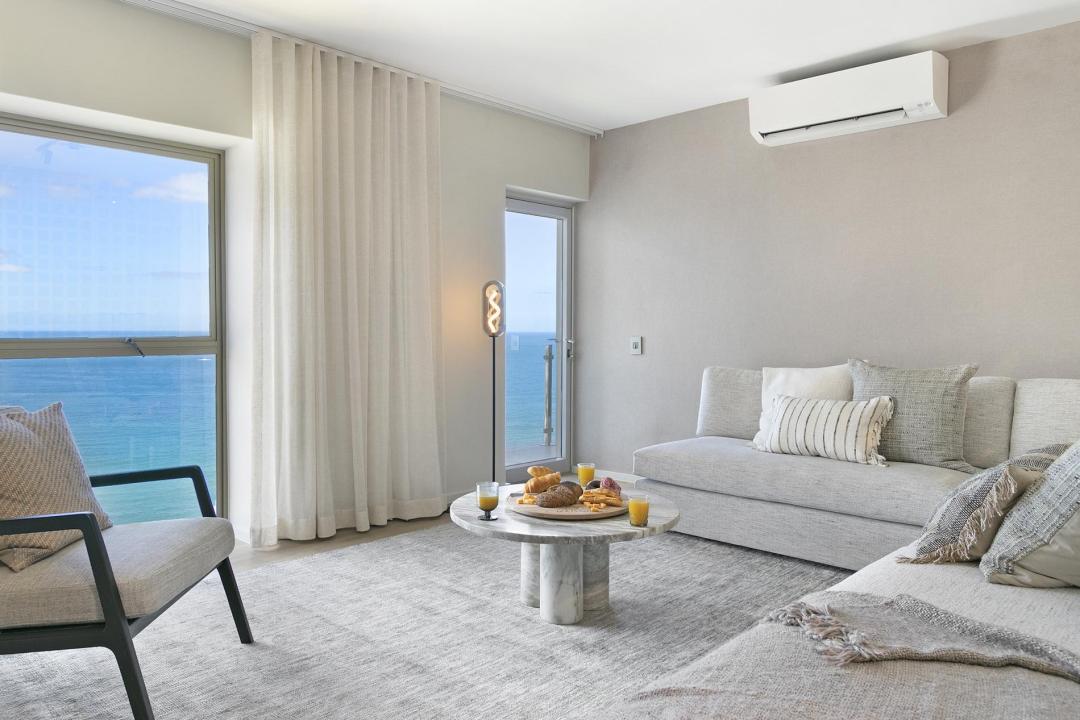 Stylish sophistication meets modern minimalism in this elegant seaside abode. Spacious, free-flowing living areas are decorated with designer décor to create a stylish ambiance. Living spaces flow effortlessly out onto a beautiful terrace with endless ocean vistas.