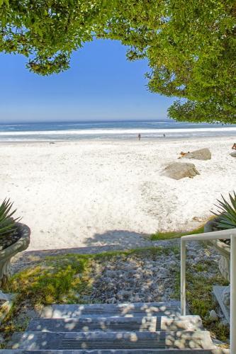 There is a beautiful side view of the beach and the ocean and rocks from the living room.