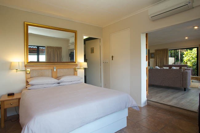 En-suite bedroom with queen size bed, electric blanket and hairdryer.