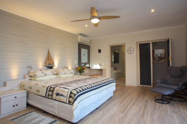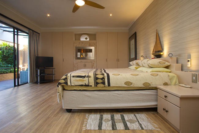 Spacious bedroom with queen size extra length bed, CD player, TV with M-Net & Satellite.