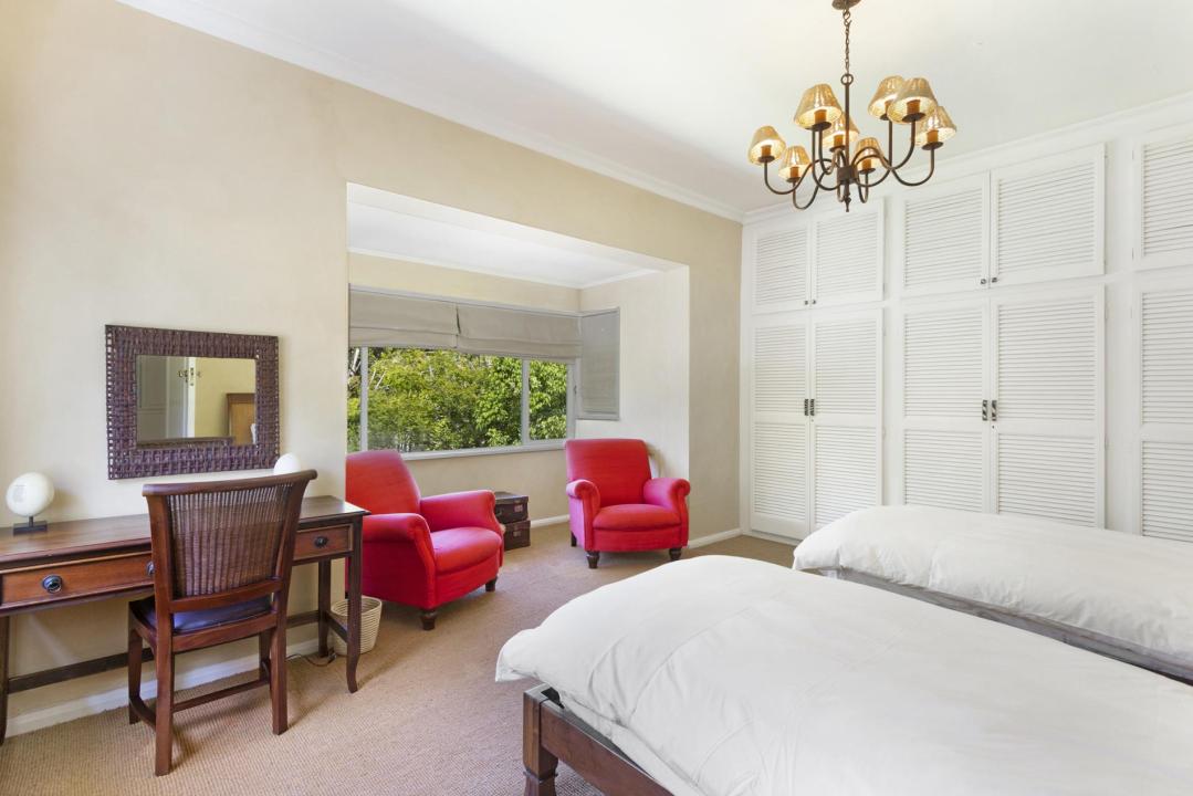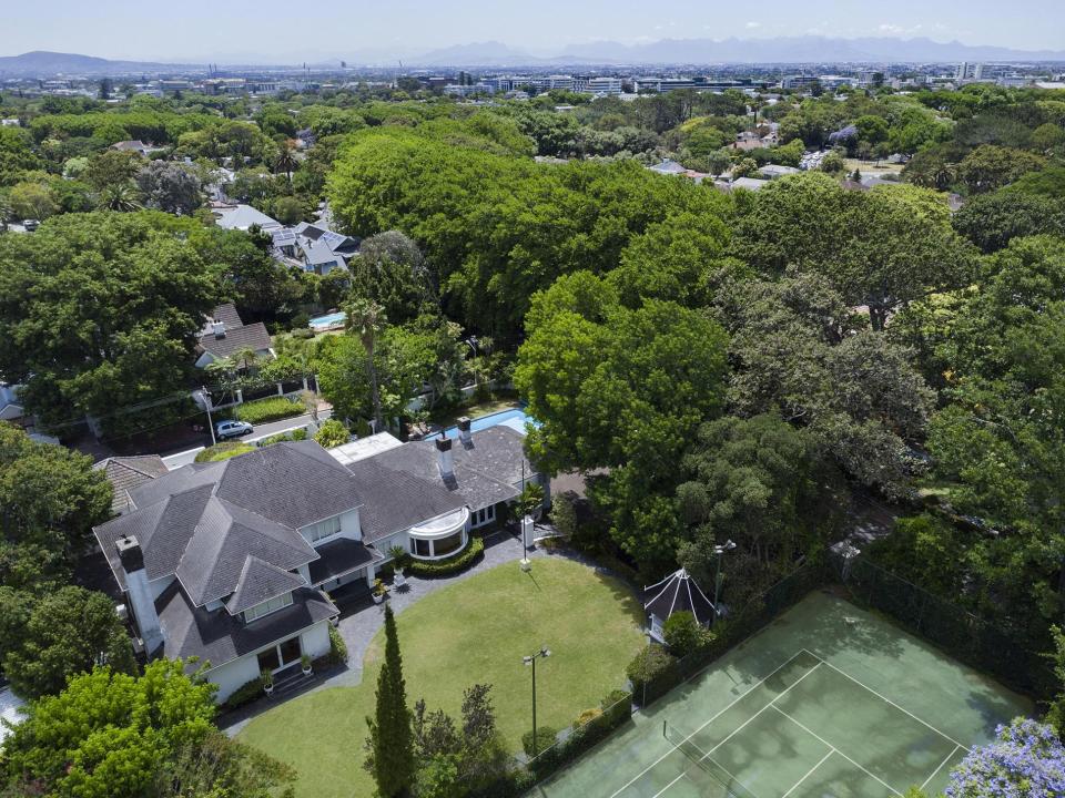 The villa is surrounded by an acre of mature gardens with stunning views of Table Mountain. There is a floodlit tennis court and a large heated swimming pool. A large pergola near the pool covers an eight-seater dining table and chairs for alfresco dining, and a smaller pergola in the garden is ideal for relaxing.