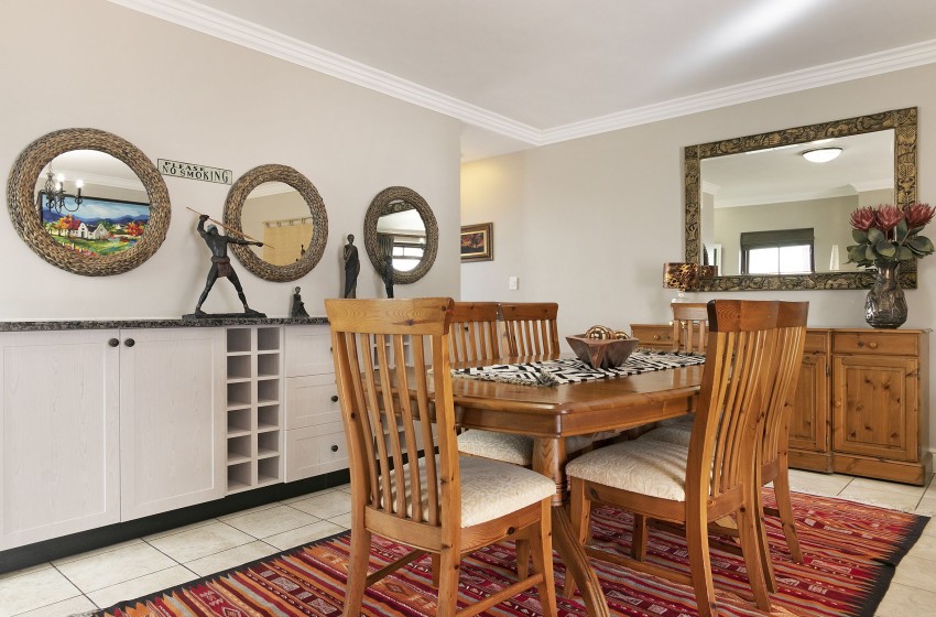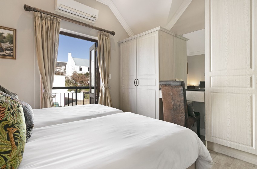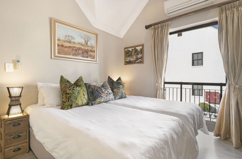 De Zalze Winelands Golf Lodges 14 boasts two spacious bedrooms and a vibrant colour palette throughout the house. The kitchen takes on a more neutral tone, but provides suitable working space and all the best appliances for your holiday outing. Everything from a fridge to the convenience of a dishwasher, you will have everything you need to enjoy your stay in this lavish home. The dining/living area totes a warm and colourful presentation – adding a unique liveliness to this home. Ample furniture, a dining room suite and a smart TV with internet facilities will make you feel right at home throughout the duration of your stay.