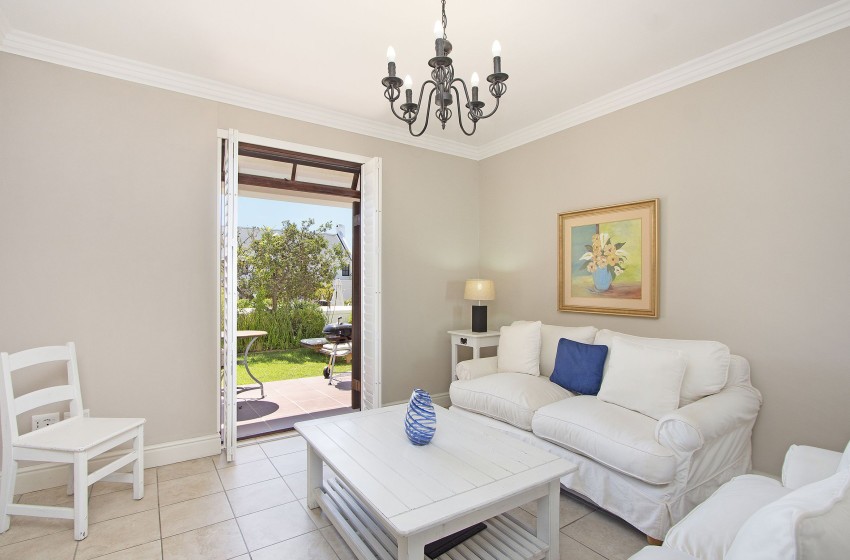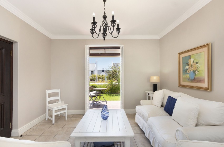 This cosy one-bedroom apartment features an open-concept living room, dining area, and kitchen that leads to a sizable patio, where you can enjoy a braai and a Weber is available for you at the front desk. A dining table with seating for four people is included in the kitchen, which is fully furnished for your self-catering requirements. A modern TV with access to WIFI and DSTV is provided in the lounge, where you may spend a comfortable evening indoors. The bedroom has two three-quarter beds that can be joined together to make a king-sized bed. A sliding door in the room leads to a little garden where you may enjoy having your morning coffee.