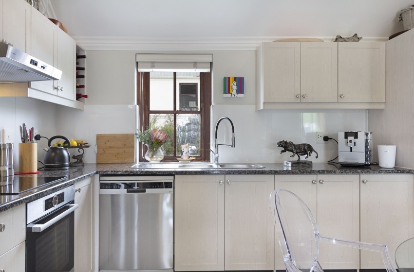 With an open-concept living area and kitchen, this one-bedroom apartment offers visitors a comfortable environment, with an inverter to assist with any power issues. The kitchen is fully furnished for your self-catering requirements, including a Jura coffee machine. A TV with DSTV and WiFi is located in the living room with a low shading system, allowing you to spend a great evening at home with your loved ones. Two single beds can be combined to form a double bed in the bedroom, which also has access to a private, en suite bathroom. Winelands Gold Lodges 32 has unique features that make it stand out such as Alice fence windows preventing any mosquitoes from ruining your stay.