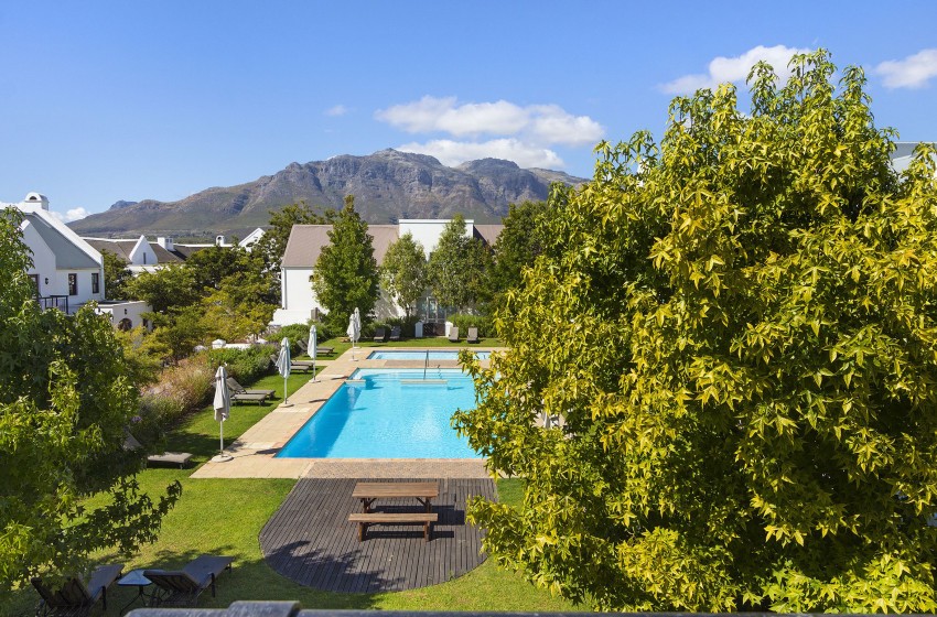 The balcony area of the apartment provides you with stunning views of the surrounding greenery, while the communal pool makes for an ideal solution for any summer day in the Helderberg Valley. The lodge offers access to the golf course, its respective restaurant as well as the Camelot Spa – ensuring that variety and fun are always present. Given the Lodge’s situation, wine tasting in and around Stellenbosch is a must; with so many different farms, flagship red wines, and world-class restaurants to discover.