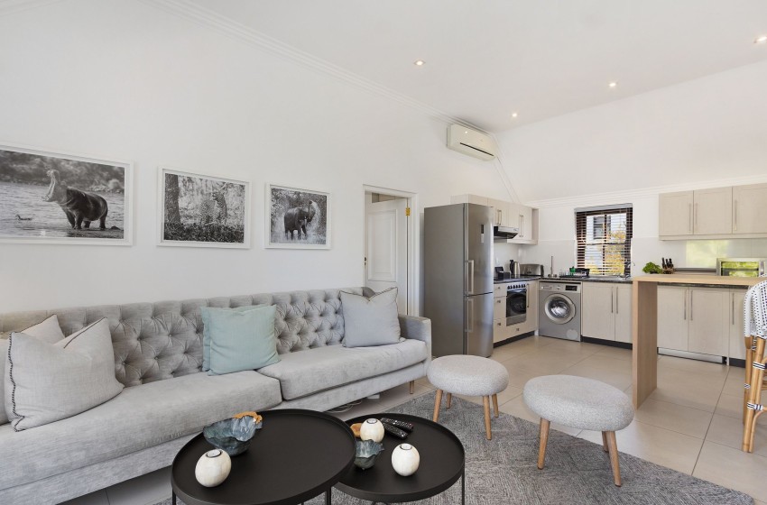 This single-bedroom holiday duplex is ideal for any couple or pairs looking to take in some new sights. The lodge’s generously-sized kitchen provides you with all that you’ll need throughout your stay; from all essential culinary appliances to a dishwasher and washing machine. The kitchen lies on the outskirts of the spacious living area – toting an open-plan layout. An extra-long sofa, coffee table, and Smart TV (with DSTV) set the scene for those early mornings and candlelit evenings spent indoors or outside by the gas barbecue. Wi-Fi connectivity is provided to all guests staying at the lodge – ensuring that you are always connected.