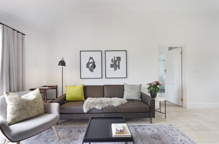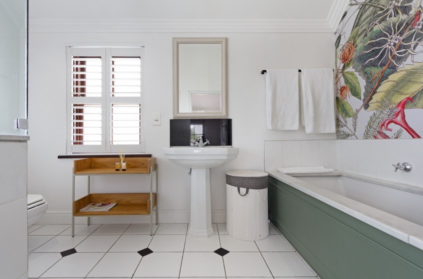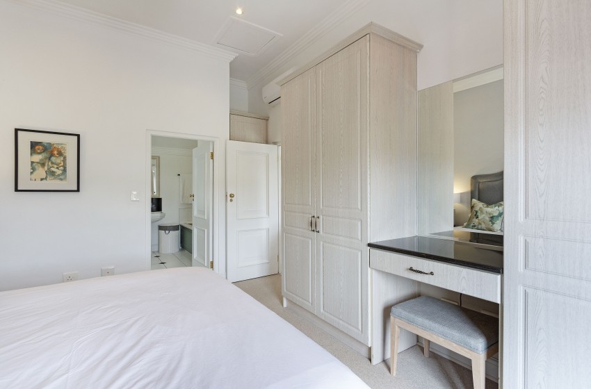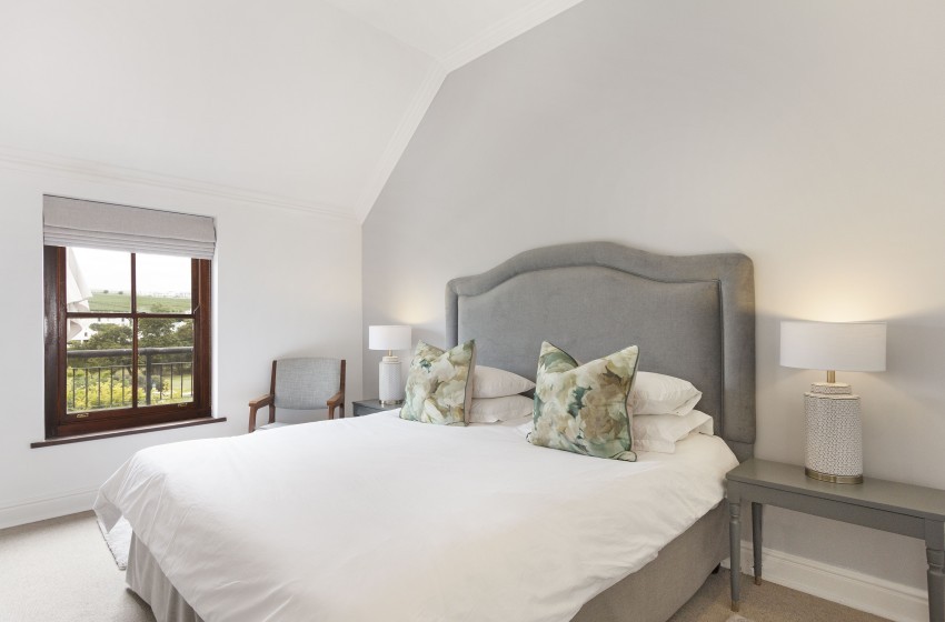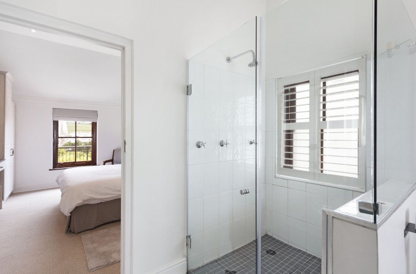 The bedroom sports a modern, neutral color palette. Two single beds are present, which can easily be converted into a spacious double bed. The room receives more than ample natural light, making it an ideal environment all year round. There is a gorgeous, private en-suite attached to the room, housing a bath, shower, vanity, and toilet.