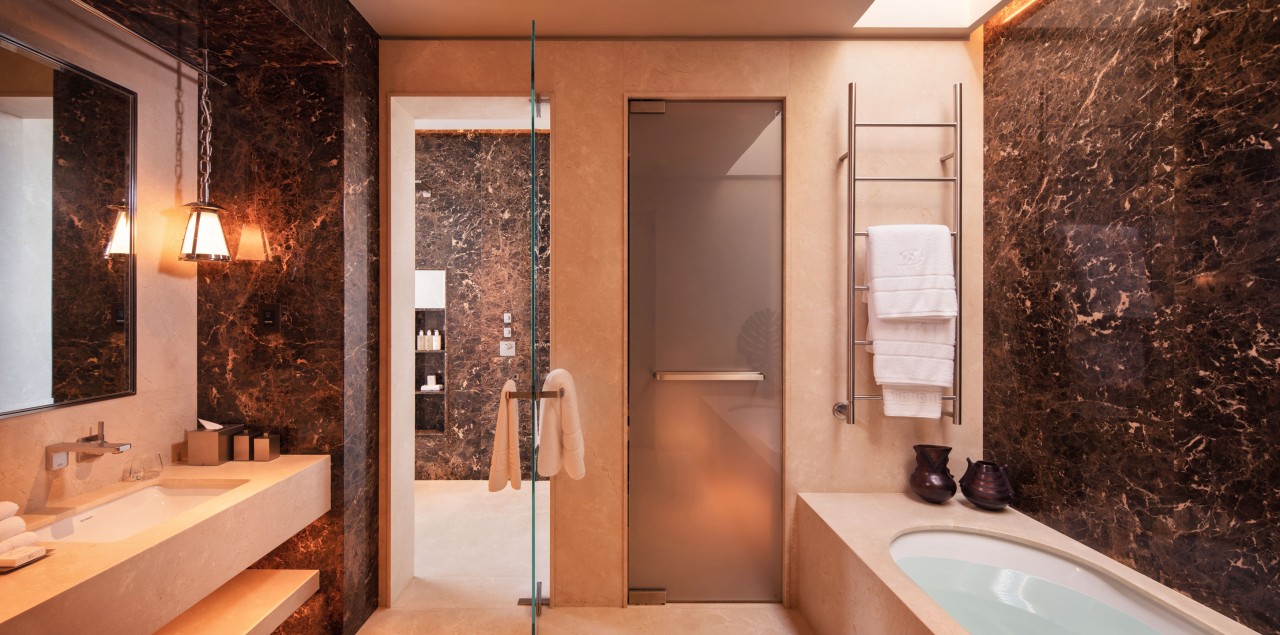 - Marble bathrooms with rain shower, bathtubs and separate WC