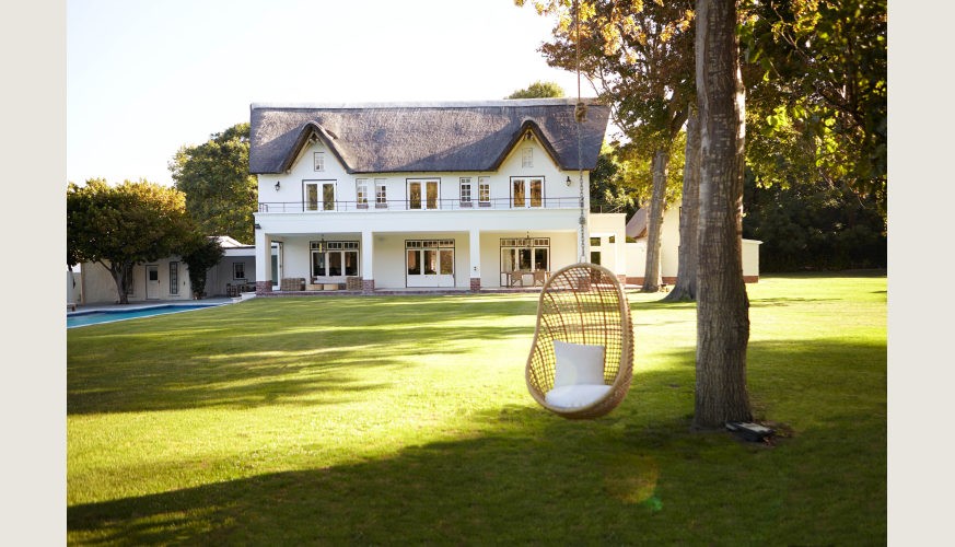 If we were to leave the beautiful valley of Hout Bay, Klein Constantia is the place we would choose to make our home. Denneboom is in Klein Constantia and in the heart of the Constantia winelands. A large beautiful thatched home with plenty of space for everyone. An awe-inspiring, long and winding drive way through traditional old style pillars gives the first glimpses of the house. Large sprawling lawns for children to play, an enormous swimming pool for fitness fanatics and families alike. Both the indoors and outdoors lend a hand to entertaining with plenty of space with shade for long lazy shared meals paired with locally sourced wines from the neighbouring farms.