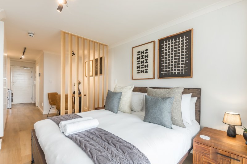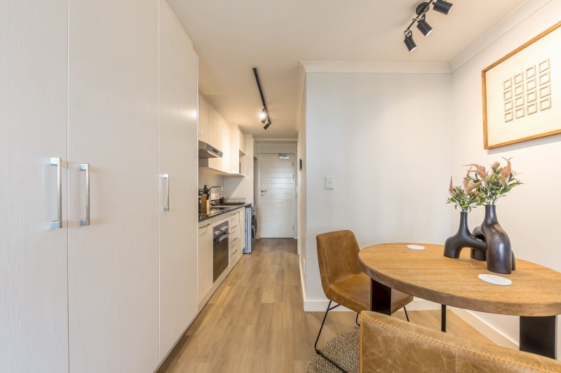 This well-appointed studio in the sought-after Newlands Peak development offers the perfect blend of convenience and comfort. The open-plan layout includes a plush queen bed, a sleek walk-in shower, and a compact kitchenette with the essentials for light cooking. Step onto the private balcony for fresh air or to enjoy a quiet morning coffee. With uncapped Wi-Fi and a secure parking bay, you’ll have everything you need for a comfortable short- or long-term stay.