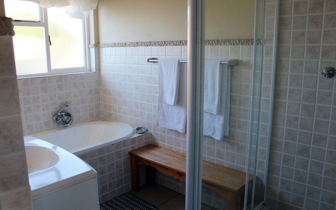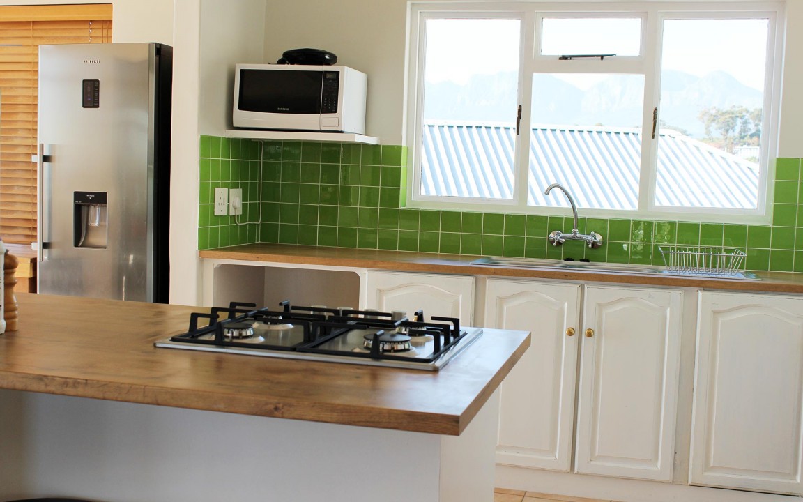 We boast a very large living/dining area with uninterrupted views of False Bay, the main swimming beach and central Gordon’s Bay all the way across the peninsula to Table mountain..
