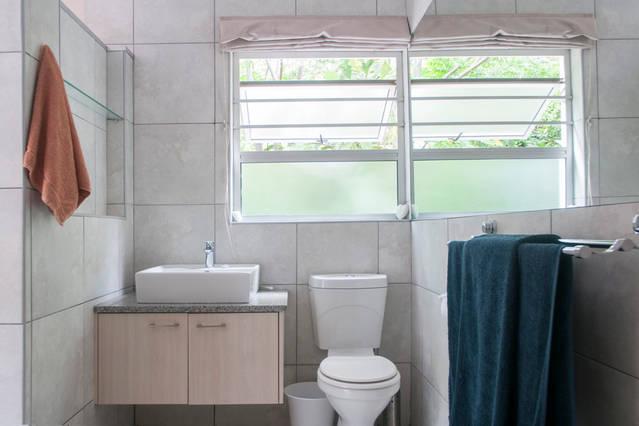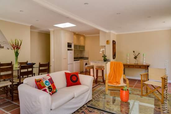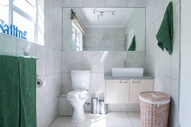 There are 3 bedrooms (main en-suite) with Queen and Double beds furnished with percale linen and soft fluffy towels. The main bedroom is en-suite and has a hairdryer. The second bedroom (double bed) and the third bedroom (2 x singles) share the large second bathroom. Both large bathrooms are equipped with a Rainshower and there is also a guest toilet. All bedrooms have plenty of cupboard space and sleep 6 adults comfortably.