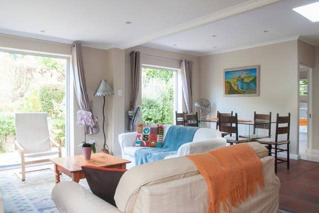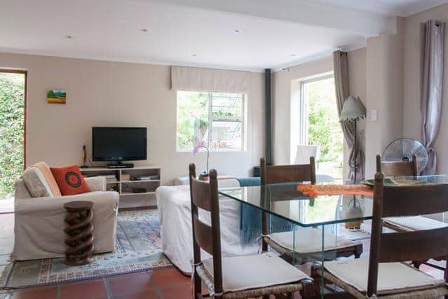 surroundings in a forest location on the back slopes of our famous Table Mountain, with loads of birdlife, guinea fowl and squirrels.
