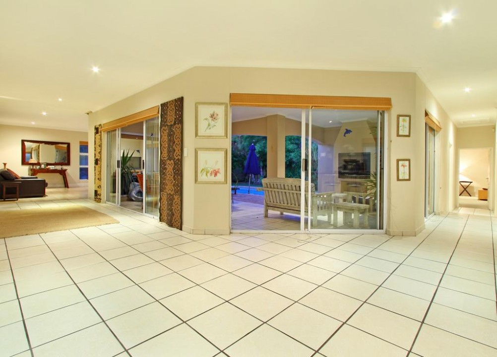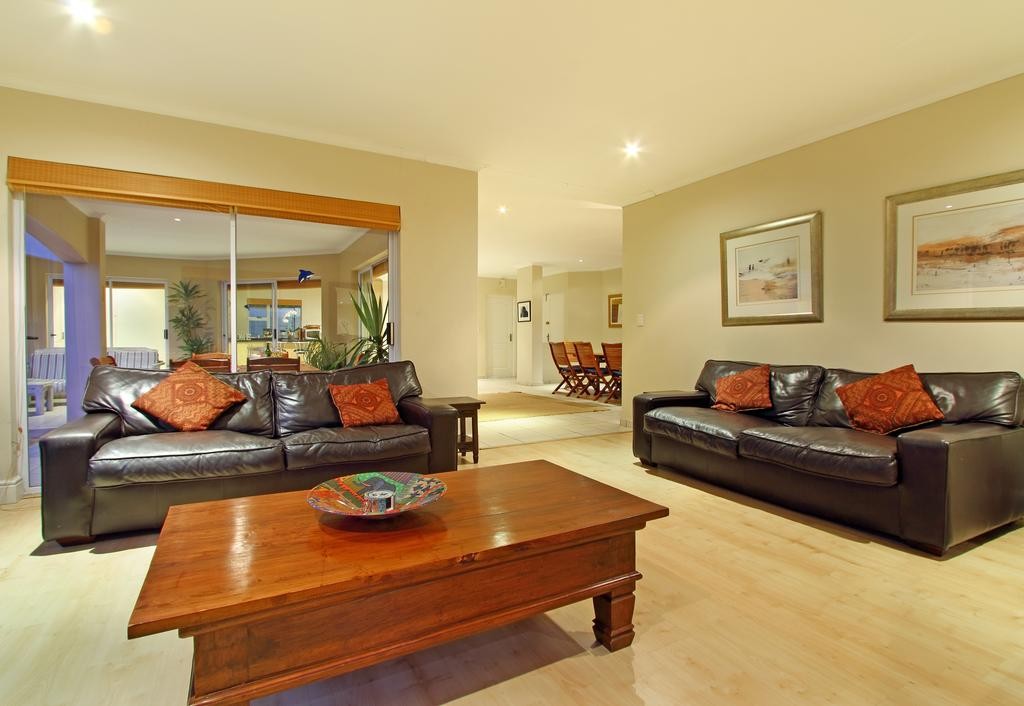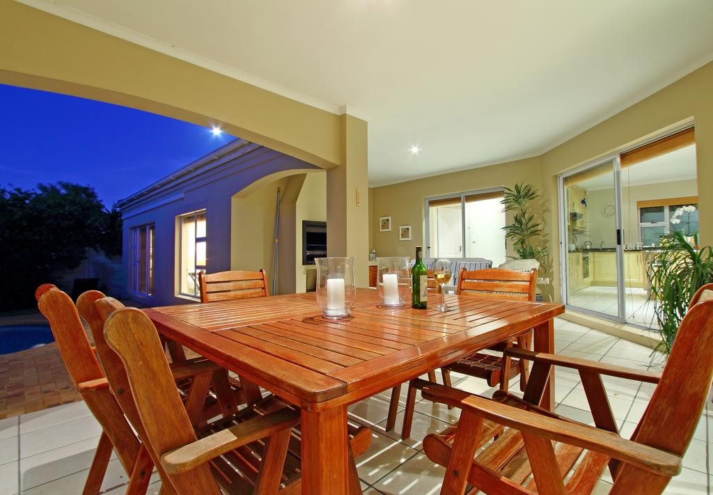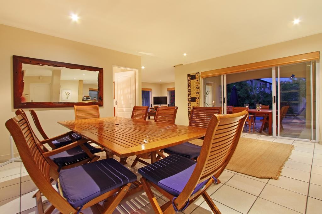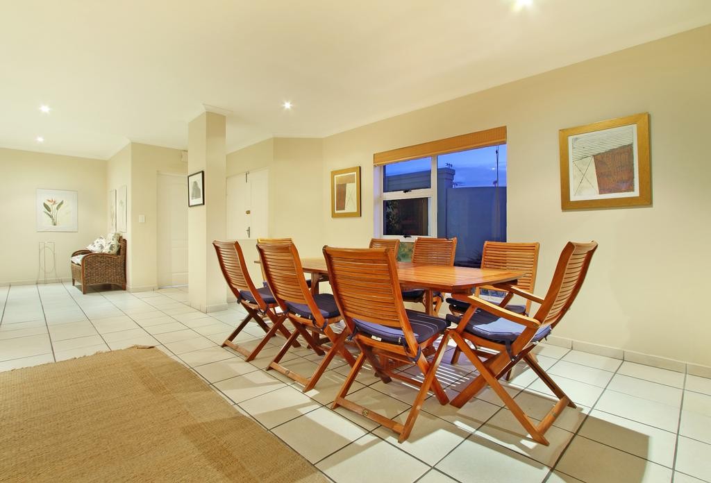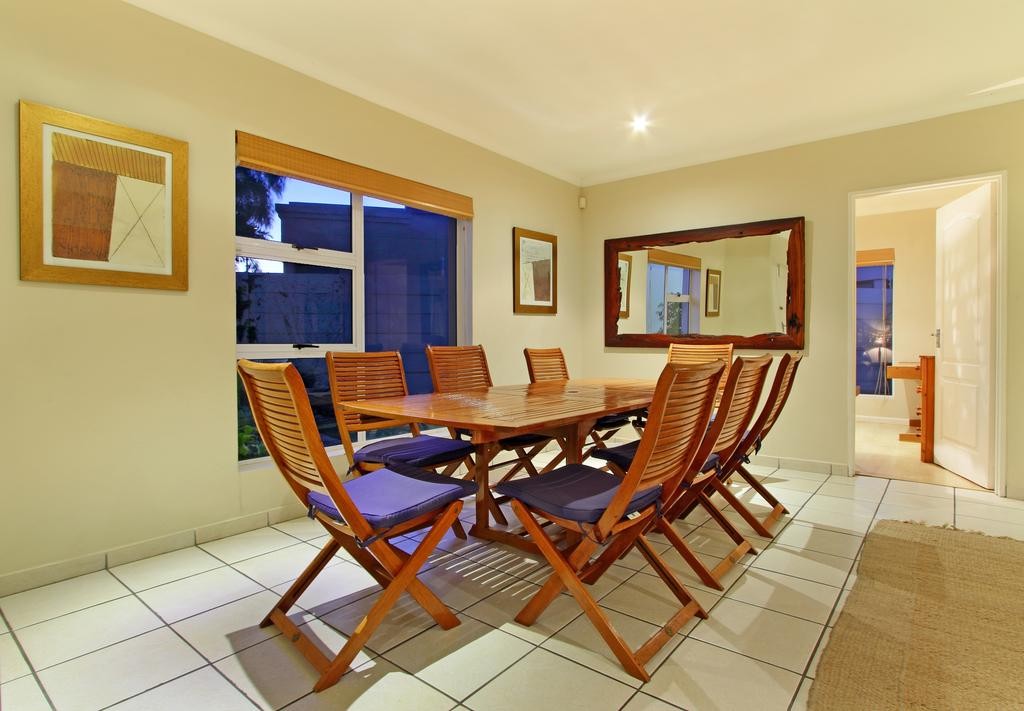 In the exquisite quiet seaside area of West Beach is this lovely holiday house in 31 Durham Road. With 4 bedrooms and a wealth of interior space, this is vacation accommodation tailor-made for a large family or group of friends that want to take time to relax and wind down. The roomy open plan lounge features luxurious furnishings and is modestly styled, and contains a plasma TV complemented by DSTV and DVD player, guaranteeing entertainment indoors. Immediately nearby is a spacious dining room suite that seats 8 around the large table.