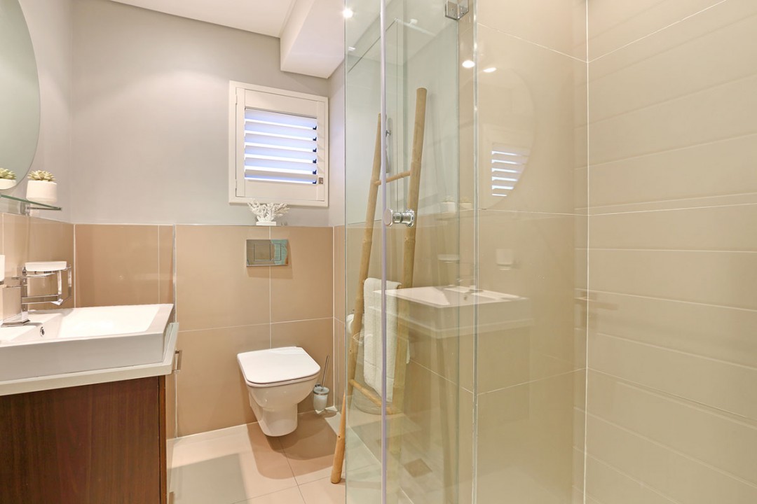 The two lovely bedrooms include a king-size bed in the main, a queen-sized bed in the second. The main bedroom is en suite with a bath and shower while there is a guest bathroom with a shower only.