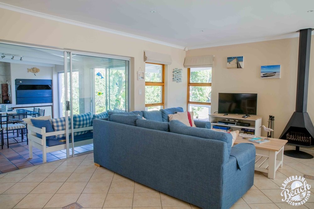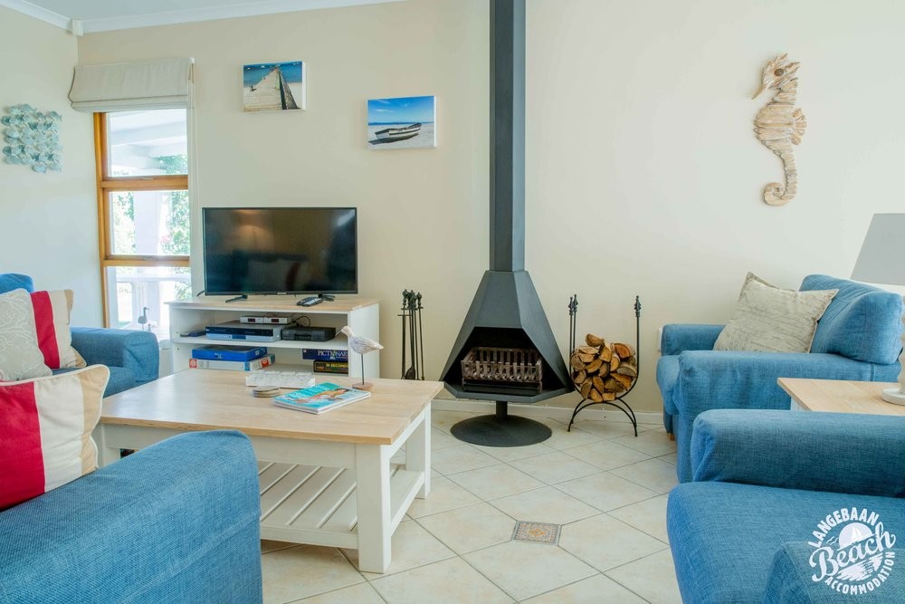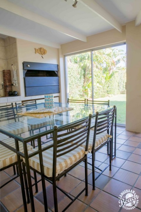 The wind protected indoor braai with enclosed garden is most welcoming in summer or winter, especially with the fireplace for cooler evenings.