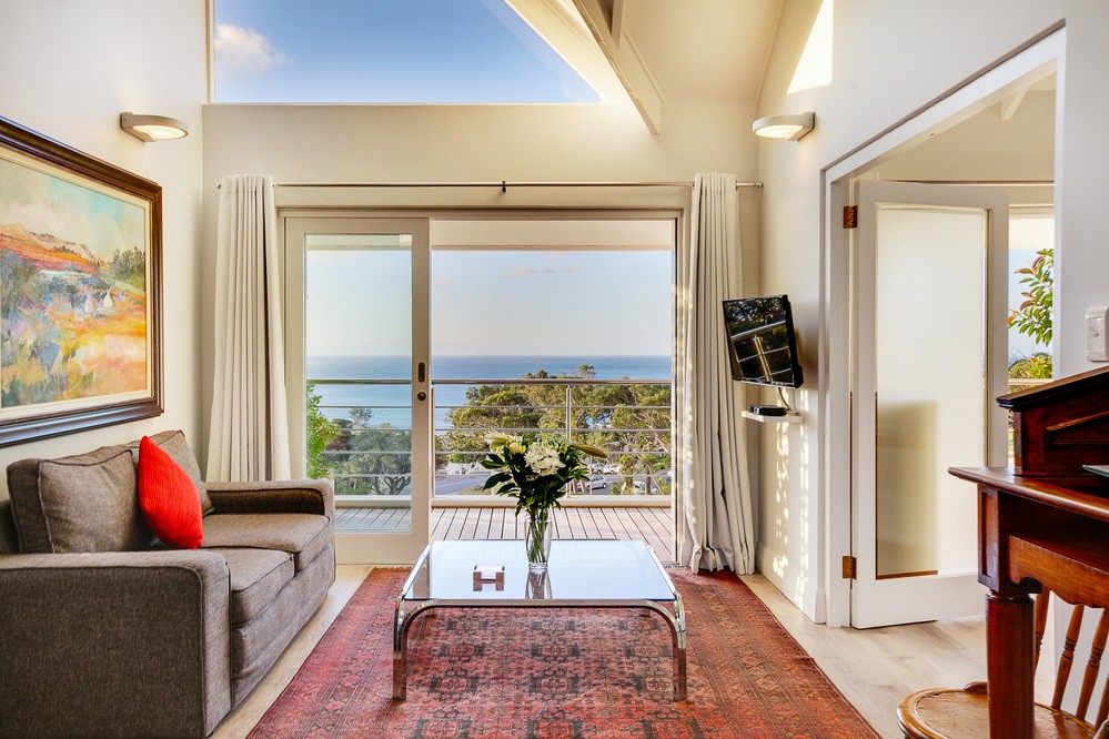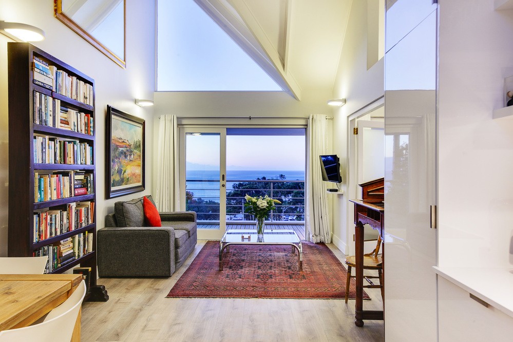 Stunning sea views from the lounge and bedroom balcony Amazing sea and mountain views Full Dstv 3 seater dining table. Open plan kitchen and Lounge/ dining area.