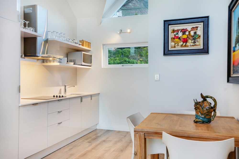 The modern kitchen is fully equiped and has a dishwasher, stove, microwave fridge/ freezer. Guest are welcome to make use of the pool ( shared with two other units) and dedicated outside / deck area Housekeeping included 1 x per week Walking distance to a grocery store as well as the Hussar grill restaurant 3 min drive down to the very popular Camps Bay strip and beach