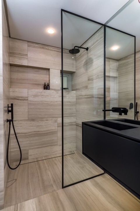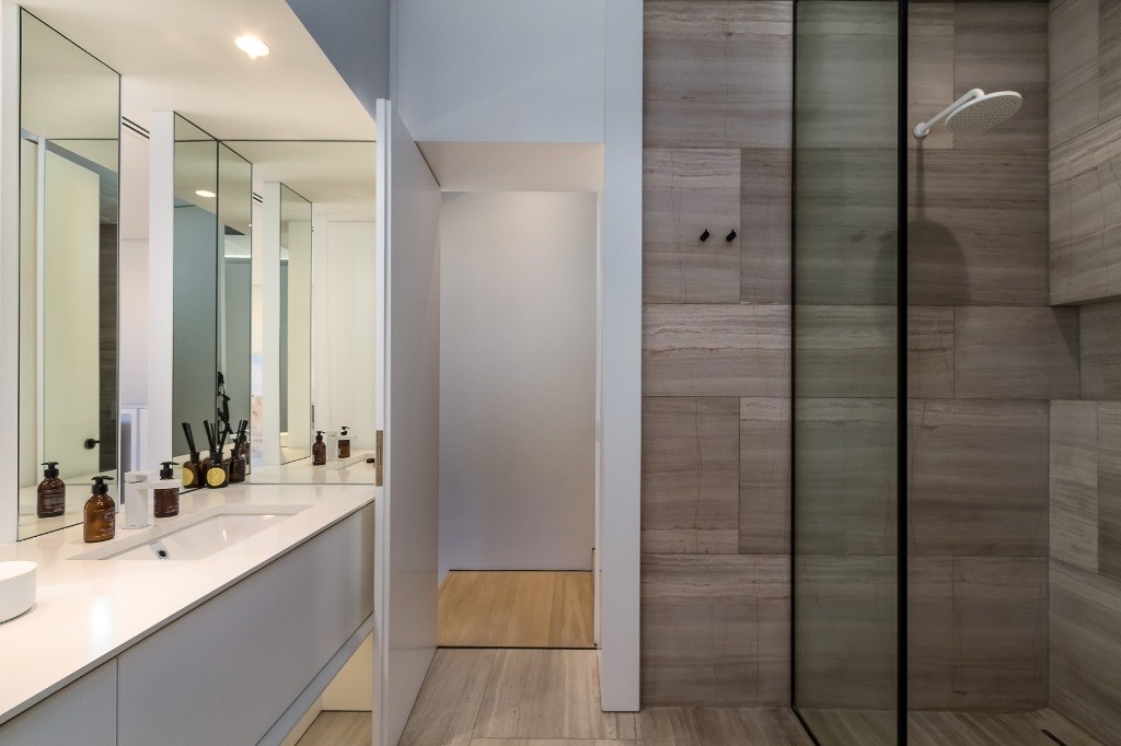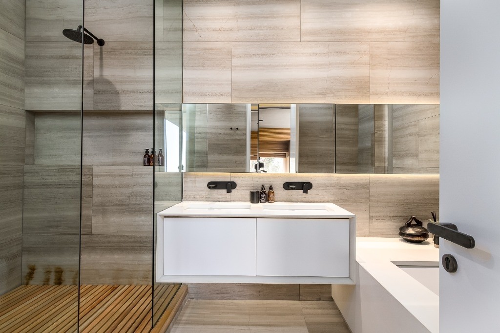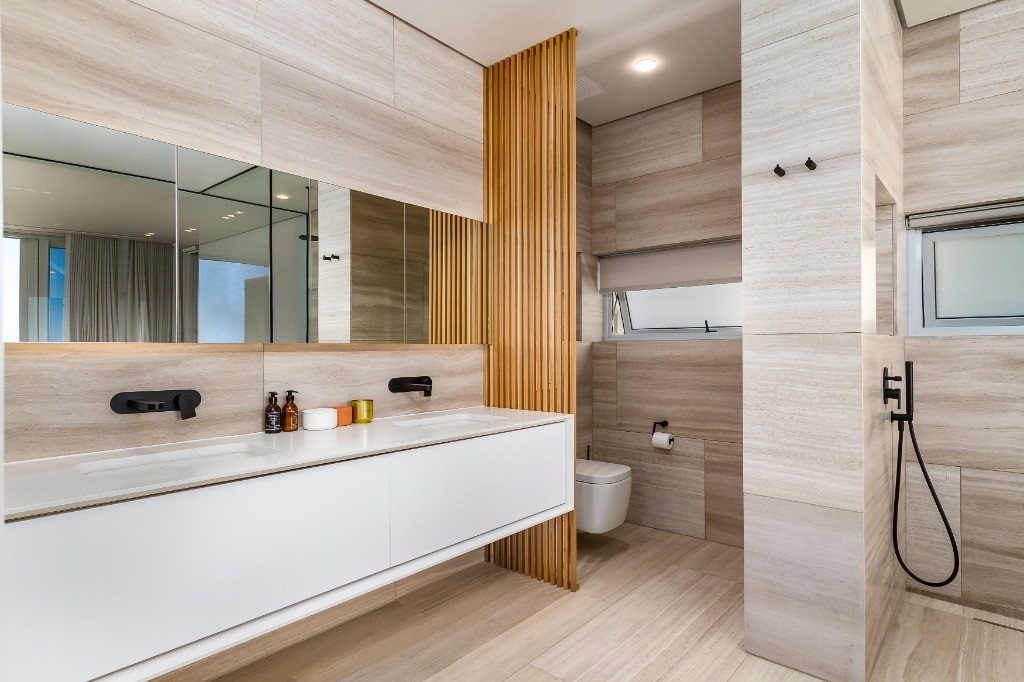 - Heated floors and towel racks
