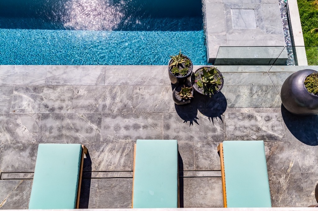 - Glass sliding doors opening onto pool deck