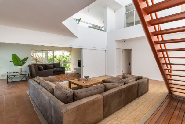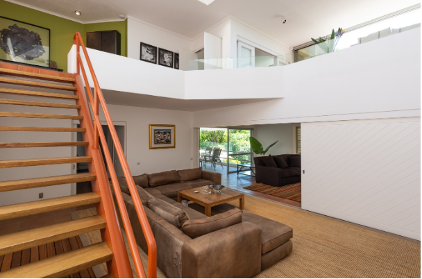 bedrooms on the middle level and a second lounge that leads onto a