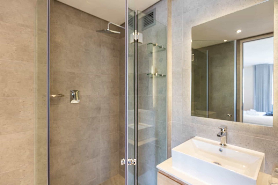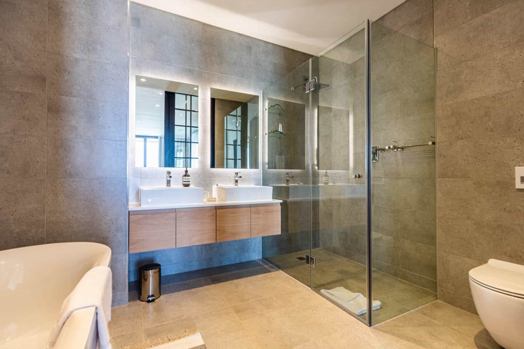 • En-suite or private bathrooms with glass-enclosed walk-in rain shower and double vanities