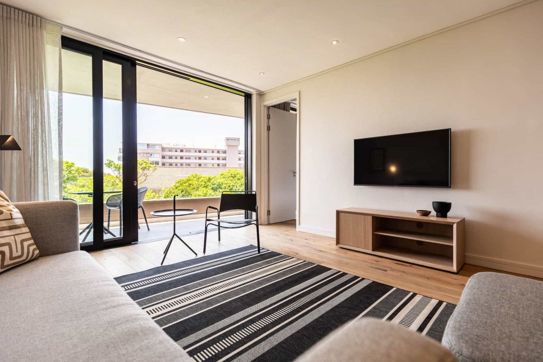 Tastefully furnished contemporary interiors boast contemporary style with designer décor, high-end fittings, and state-of-the-art appliances ranging from plasma screen digital satellite televisions to high-speed fibre connectivity. Living spaces are naturally lit from floor-to-ceiling windows and sliding doors that embrace breathtaking views over the Green Point Park and the ocean beyond, and stylish kitchens have high-end Miele appliances, ranging from ovens, hobs and extractors to fridge/freezers and dishwashers. Bedrooms have premium bedding, ample cupboard space, and en-suite bathrooms with glass-enclosed rain showers, heated towel rails, double vanities, and chic wooden finishes. Deluxe amenities include air-conditioning, daily housekeeping, laundry facilities, lift access, CCTV security and access, and secure parking.