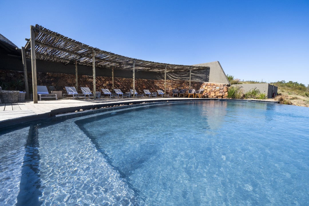 Kwena Lodge offers guests 14 stand-alone bedrooms designed with a modern and luxurious twist on the traditional Khoi-San “hut”. Each romantic open plan suite is nestled into its spectacular surrounds with 180-degree views, sky lights for star gazing, wood burning fireplaces and deep baths to keep you warm upon return from an evening game drive. Lodge facilities include a chic bar and lounge area, infinity pool, multiple indoor and outdoor dining venues, bush spa, reception and curio shop.