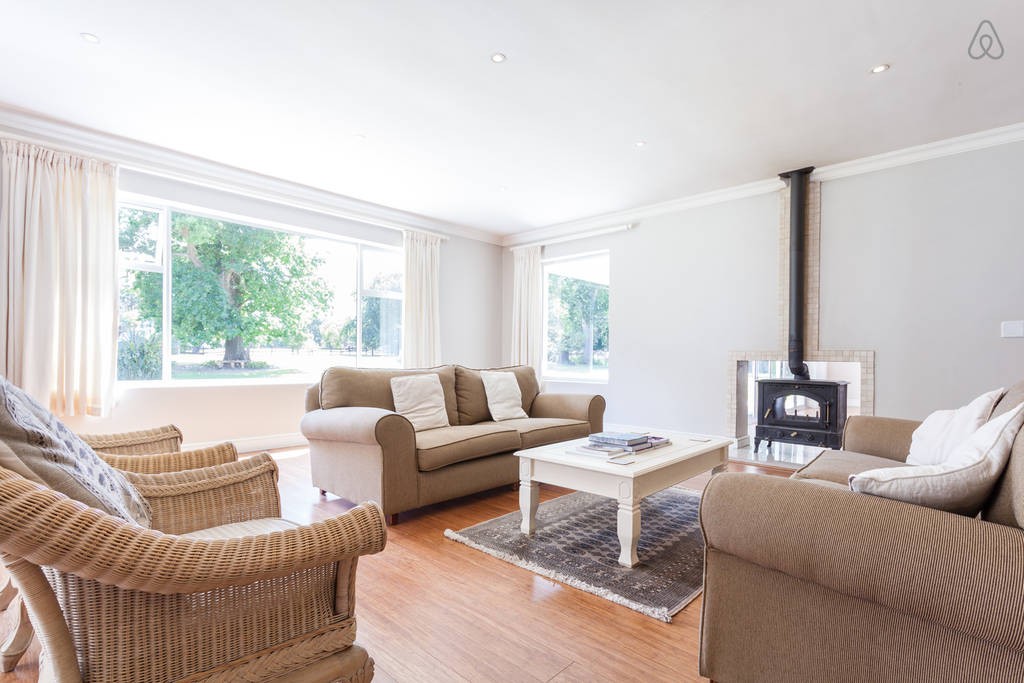 The open plan living area is flooded with natural light through the glass concertina doors. Spacious and elegantly decorated, the living area spills onto the pool and entertainment area. The double sided fireplace will heat the lounge and dining room simultaneously in the colder months.
