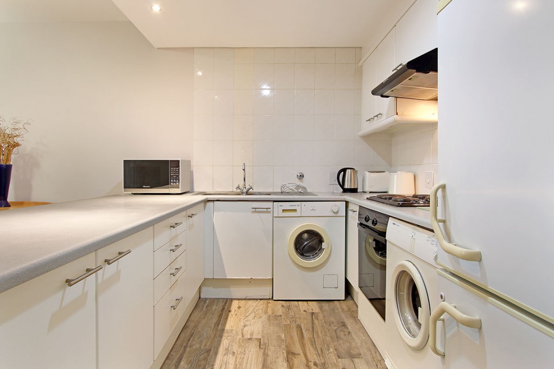 The dining area can seat up to 6 people, while the full kitchen comprises of all the essentials, including a stove and oven, toaster and even washing machine and tumble dryer.