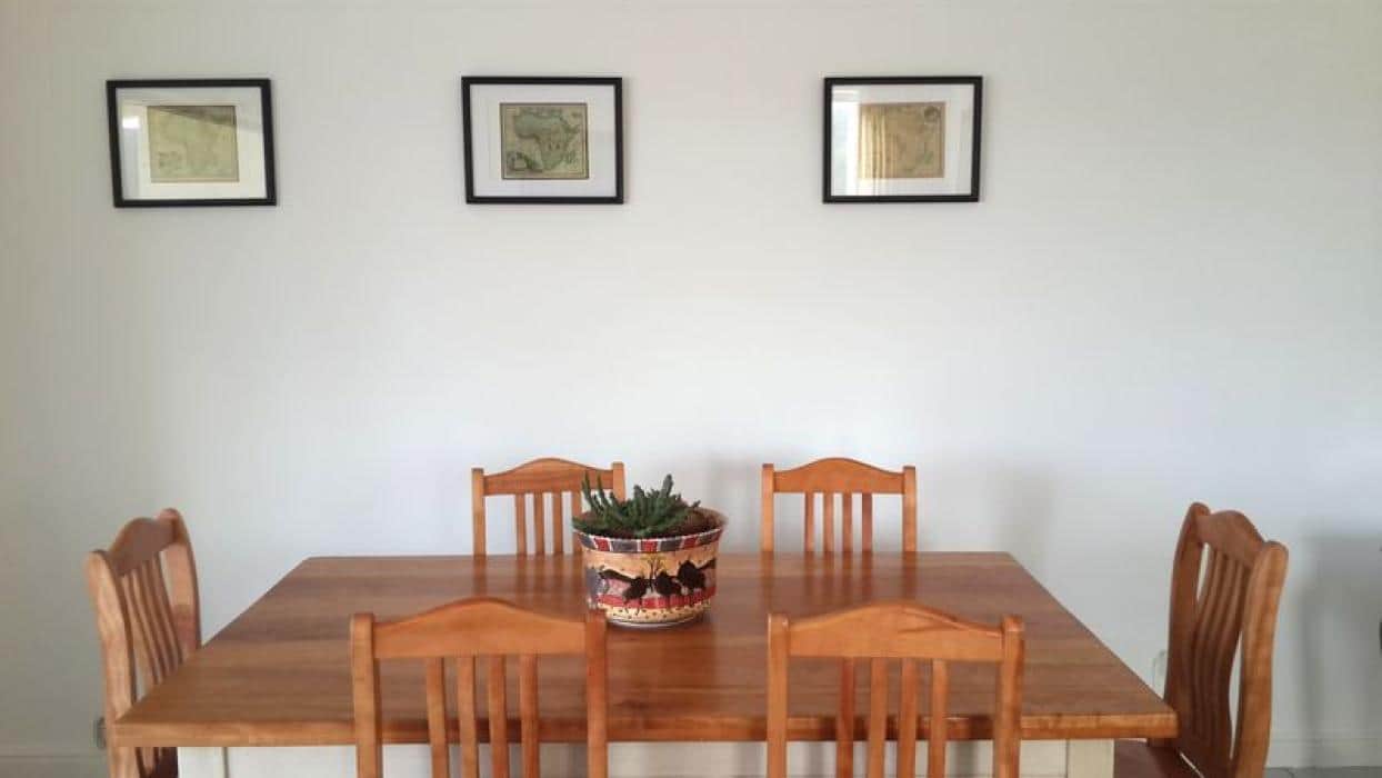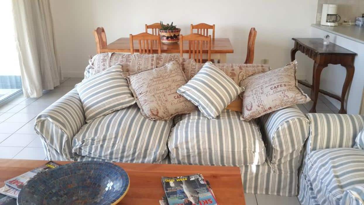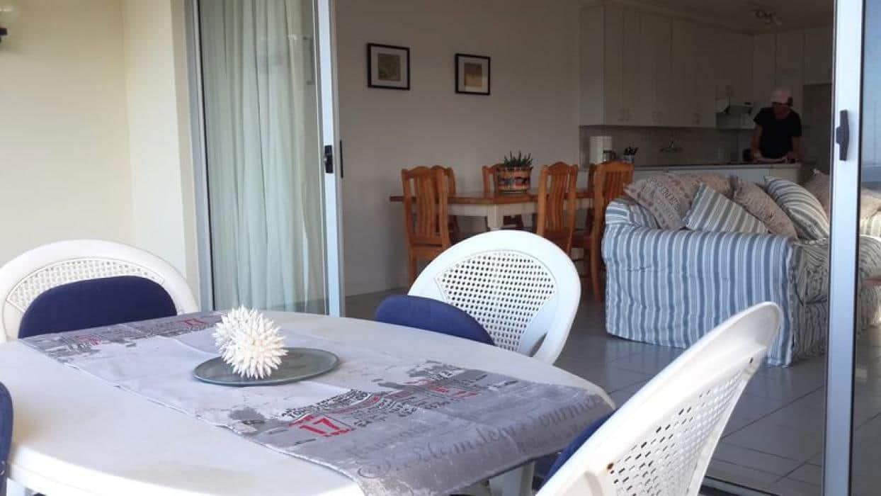 The dining area and lounge are spacious. Just walk out to a patio with views. On the patio is a gas braai and dining table. The kitchen is well fitted with everything you would expect. And if you have special needs, let us know and we will get it for you. There’s DStv and WiFi on request.