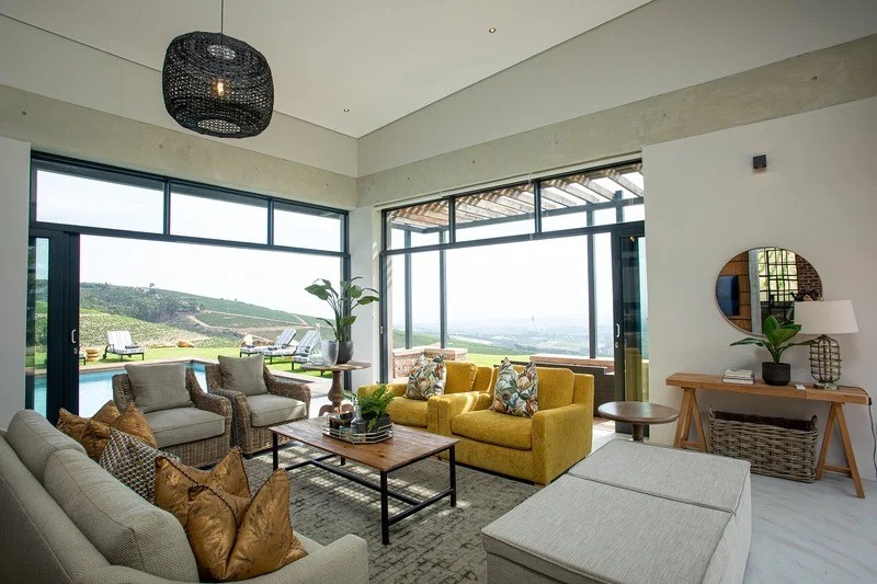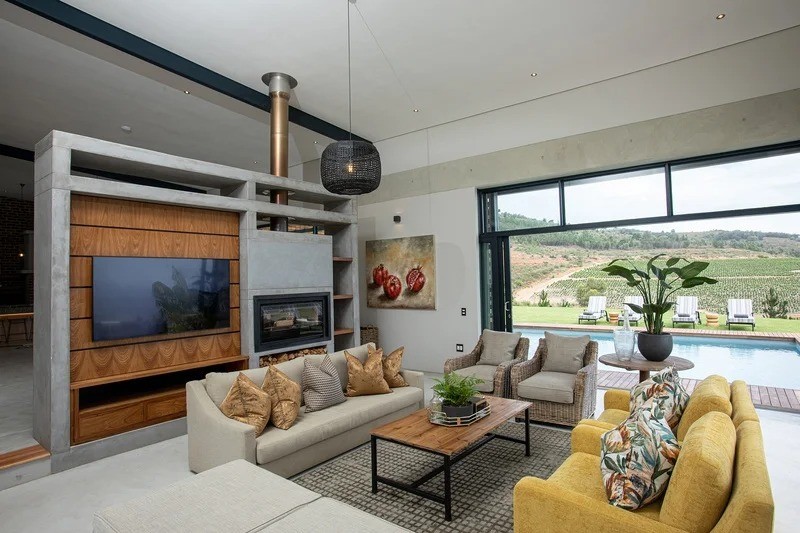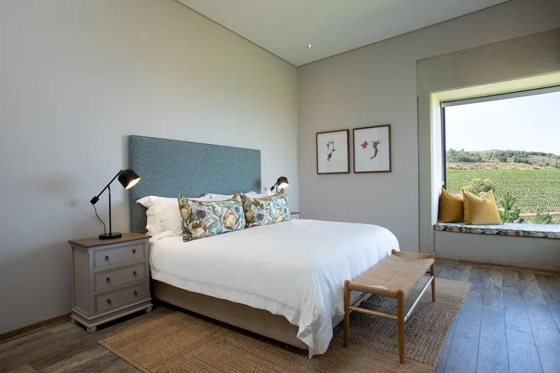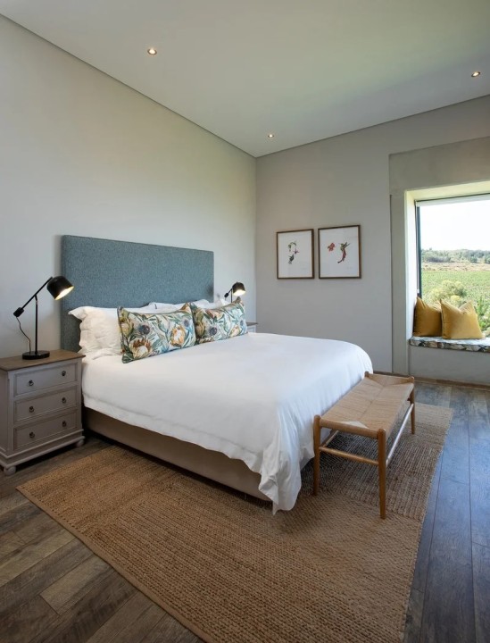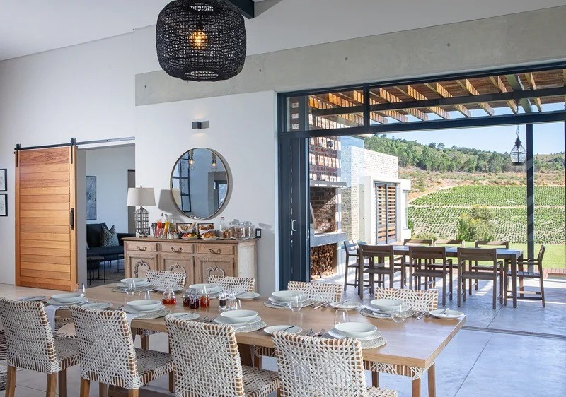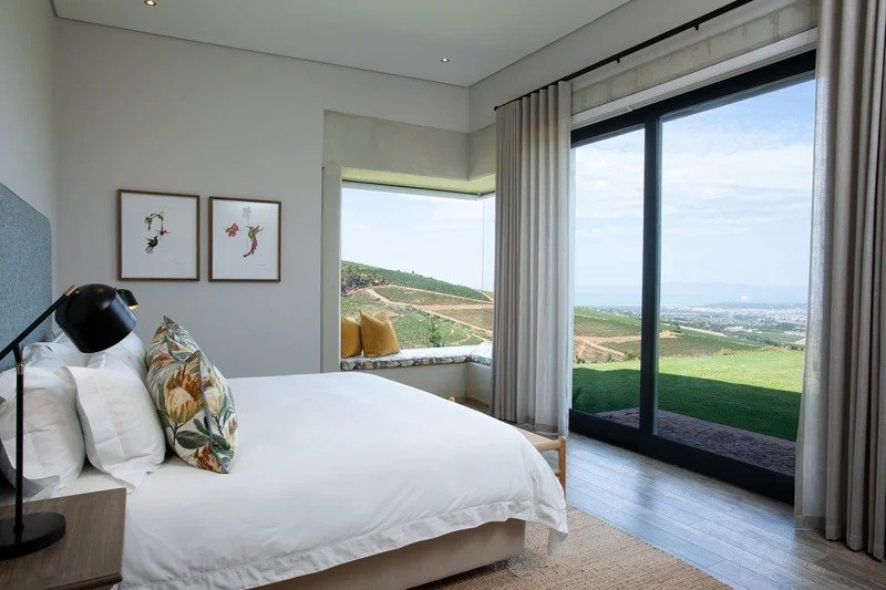 The four-bedroom all-en-suite Villa lives up to its name, with sweeping views all the way to Cape Point on a clear day. Big and spacious for multi-generational gatherings, the villa combines luxury with coziness. A fireplace in the lounge lends itself to evening board games, oversized rain showers are fun for the kids, a woodfire braai in the kitchen is perfect for gathering the gang together, and a pizza oven on the patio is a cheery backdrop for evening cocktails next to the private swimming pool. A welcome basket with wine and snacks, a full-service butler and private chef, and access to the members-only wine tasting at the cellars – all these put a quality stamp on an exclusive Cape holiday.