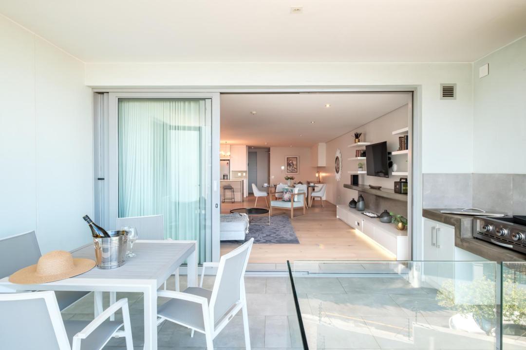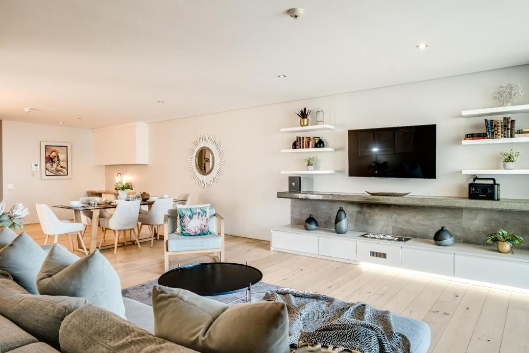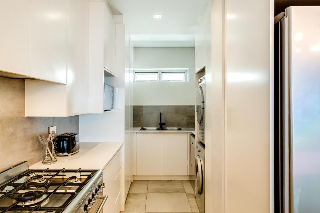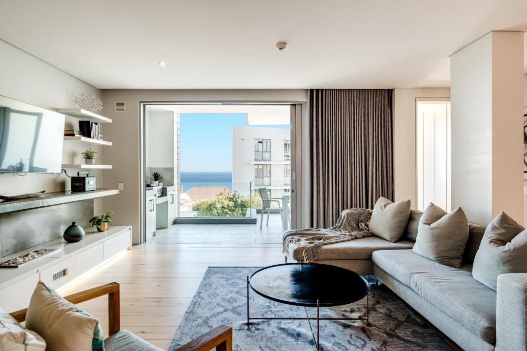 Helio Haven is a sophisticated apartment located in the suburb of Sea Point, offering a stylish and comfortable base with stunning sea views. The main bedroom features a king-sized bed, air-conditioning, a TV, a desk, and access to the balcony, with an en-suite bathroom complete with a bath, shower, and double vanity. The second bedroom offers a queen-sized bed, TV, and an en-suite with shower and double vanity. The fully equipped kitchen includes a gas hob, Nespresso machine, dishwasher, washer, and dryer, along with a breakfast bar for four. The open-plan living and dining areas are designed for comfort, with seating for four, a dining table for six, air-conditioning, a TV, and a gas fireplace. The balcony provides outdoor dining for four and a gas BBQ, perfect for enjoying the sea breeze. Additional amenities include portable backup power and building security. Situated close to the Sea Point Promenade and the V&A Waterfront, Helio Haven offers an ideal setting for exploring Cape Town’s scenic beauty and vibrant attractions.