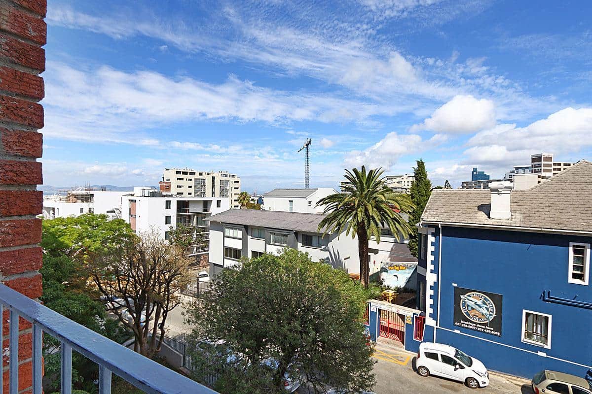 The balcony will just fit two of you and your coffee or red wine. Choose between the cruise liners in Cape Town Harbour or the upper reaches of Green Point and Signal Hill and Devils Peak for views.