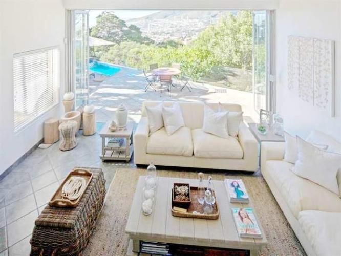 The pool deck is just such an inviting place. Here you feel like entertaining guest and family. The spacious lounge of this luxury accommodation in Tamboerskloof opens up on the patio. Every part of this house designed for a social holiday. Nothing is overlooked. Even the bedrooms invite you to come and lay down for the night. And stay in bed if you choose.