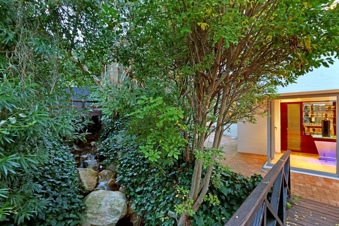 This extraordinarily beautiful home has magnificent views and a mountain stream running alongside providing a constant soothing melody. It is a symphony of glass and stainless steel with travertine floors and African rosewood.