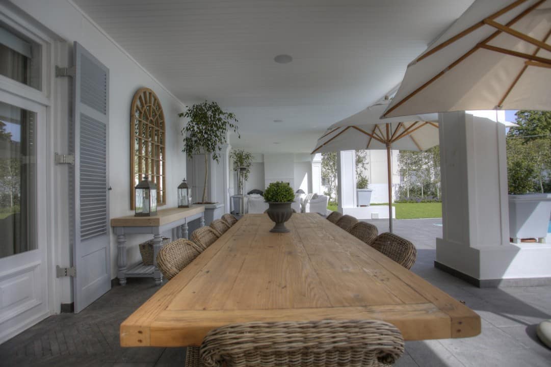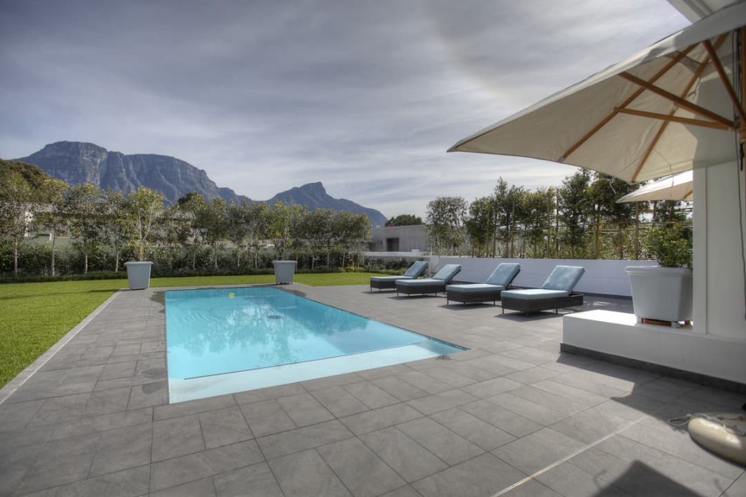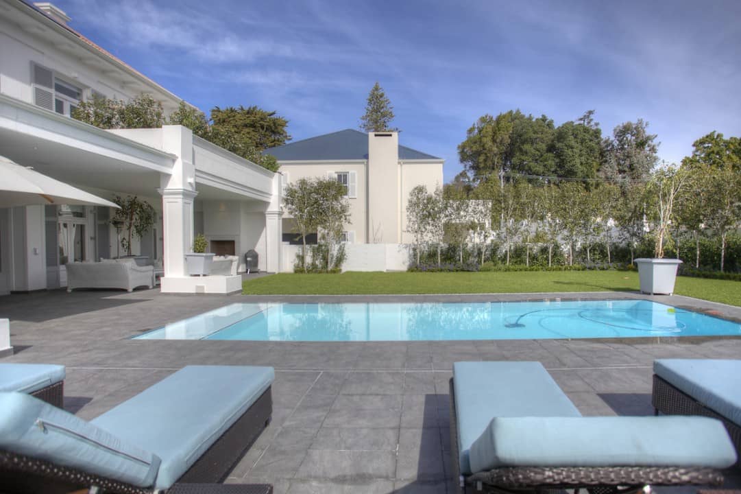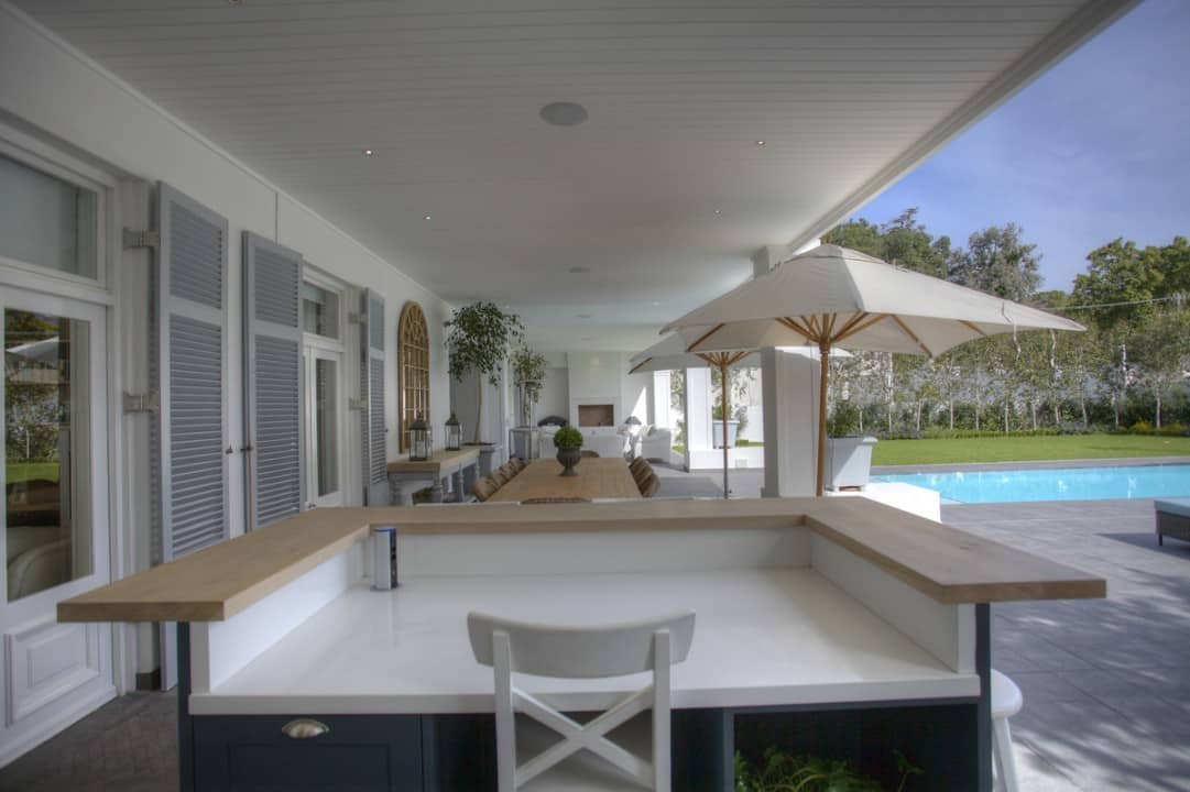 • Outside area includes a covered patio with braai/fireplace areas, outside bar area, a tanning sundeck, large grassed area and a 12m heated swimming pool.