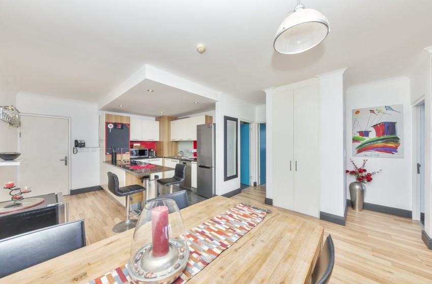 Nestled in one of Cape Town’s most scenic and vibrant neighborhoods, Horizon Bay 201 invites you to unwind in style. The apartment features a sleek, fully equipped kitchen complete with contemporary countertops, ample cupboard space, a dishwasher, Nespresso machine, and a washer – everything you need for effortless self-catering, whether you’re whipping up a quick breakfast or a gourmet dinner.